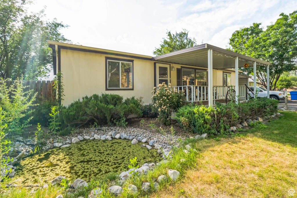 This home LOOKS AND FEELS like a SINGLE FAMILY home! LARGE LOT has water feature pond and is fully fenced. This is truly the BEST HOME in the area! COVERED PATIO and DECK! 3 bed, 2 bath SPACIOUS home with 1515 square feet. FINANCING available! ALL APPLIANCES INCLUDED! Lot rent is $900 per month and includes beautiful clubhouse and pool and large grassy common areas. Call today for your private showing!