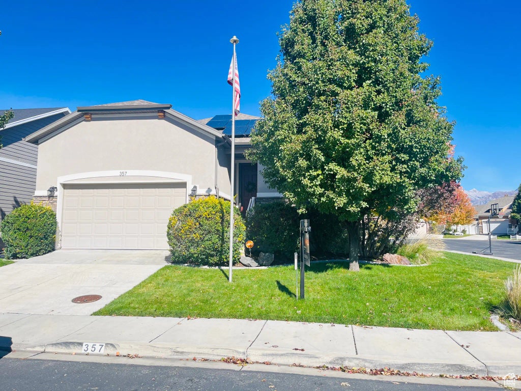 *Sale failed due to buyers situation changing. NO HOA, 2 minutes to the freeway entrance which makes commuting a breeze! Situated on the East side of I-15, so not as much traffic as they have on the west side. Beautiful well maintained home and nice yard that isn't so large that you have to spend your whole weekend doing yard work. Solid surface counter tops, stainless steel appliances, warm wood floors, updated lighting, fresh clean carpet and paint, nice bathrooms, large windows, great sized bedrooms, living room in basement comes equipped with a ceiling mounted projector and surround sound for all your movie nights! Located in a cul-de-sac. Brand new roof May 2025 with paid off solar panels which make your electric bill almost nothing. Alarm system in place, a paid off water softener One of the bedrooms in the basement has been converted into a hair studio/salon with the hair washing station right across from the studio in the space under the stairs (seller willing to remove) The garage has a work bench and built in shelving *As for the closing costs offered above, as of 10/3/25, that $5000 credit could provide a 30-year conventional fixed rate of approximately 5.875% which would allow for a lower payment! (Rates and terms listed above are subject to change without notice. All loans are subject to credit approval, property approval, and program guidelines.) Square footage figures are provided as a courtesy estimate only and were obtained from county records. Buyer is advised to obtain an independent measurement.