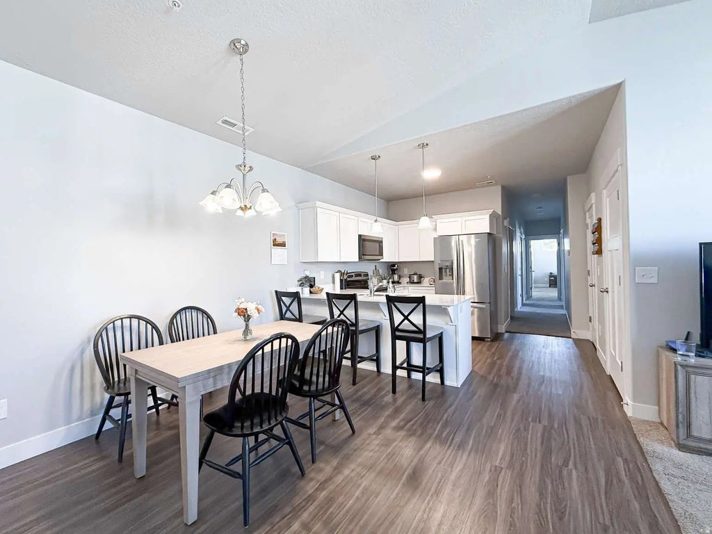 Top-floor condo in the desirable Wildflower community! Enjoy vaulted ceilings, quartz kitchen countertops, and abundant natural light. Includes single-car garage, driveway parking, walk-in closet, and extra storage. Enjoy endless, adventure-filled amenities including a private lake with a beach, a heated pool, two playgrounds, pickleball and volleyball courts, and a dog park with washing stations. Seller is offering to cover the HOA transfer fees and include the refrigerator as an appliance.